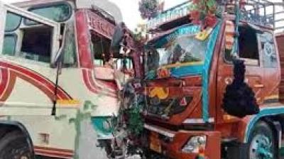 ओवरटेक करते ट्रक ने बस को मारी टक्कर, 13 यात्री घायल