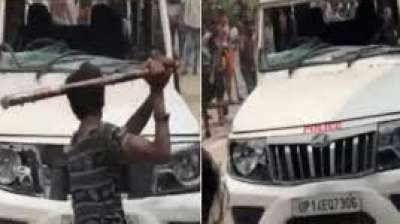 गाजियाबाद में पुलिस की कार में कांवड़ियों ने की तोड़फोड़