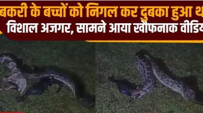 विशाल अजगर का हैरतअंगेज करतब: बकरी के दो बच्चों को निगलने के बाद जंगल में जाने से पहले उगल दिया, VIDEO सामने आया