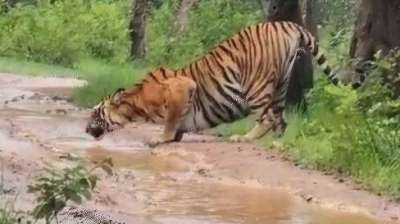 मंडला में भीषण गर्मी से बेहाल, टाइगर्स ने लिया चिल्ड वाटर का सहारा