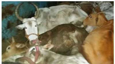 ट्रक में भूसे के तरह भरे थे गोवंश, दो की मौत, हिन्दूवादी संगठन के सहयोग से पुलिस ने पकड़ा