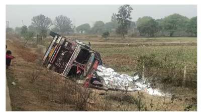 नेशनल हाईवे 43 पर पुट्टी लेकर जा रहा ट्रक पलटा, चालक घायल, दो दिन पहले डॉक्टर की हुई थी मौत