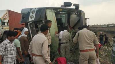 नेपाल जा रही बस पलटी, 200 मीटर तक घिसटती रही, 1 मजदूर की मौत, 30 घायल