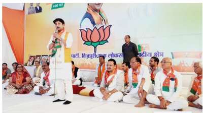 शिवपुरी । गुना-शिवपुरी संसदीय सीट से भाजपा प्रत्याशी बनाए गए केंद्रीय मंत्री ज्योतिरादित्य सिंधिया ने अपना चुनाव प्रचार तेज कर दिया है। इसी क्रम में शिवपुरी जिले के खनियांधाना व पिछोर...
