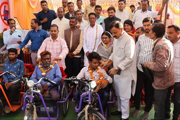 गाडरवारा और सालीचौका के कार्यक्रमों में 396 वृद्धजनों और दिव्यांगजनों को 595 सहायक उपकरण वितरित किये गये। मंत्री सिंह ने कहा कि दिव्यांगजनों के प्रति जन-सामान्य में मदद का भाव होना चाहिये। उन्होंने कहा कि निर्धन वर्ग का परिवार अपनी बेटी का विवाह सरलता से कर सके, इसके लिये जिले में मुख्यमंत्री कन्यादान योजना में सामूहिक विवाह सम्मेलन आयोजित किये जाएंगे। पात्र हितग्राहियों को 55 हजार रुपये की राशि दी जायेगी। मंत्री सिंह ने योजना के व्यापक प्रचार-प्रसार पर भी जोर दिया। शिविर में दिव्यांगजनों को ट्रायसिकल, व्हील-चेयर, वॉकिंग-स्टिक, ब्रेल किट, श्रवण यंत्र सहित अन्य उपकरण वितरित किये गये।