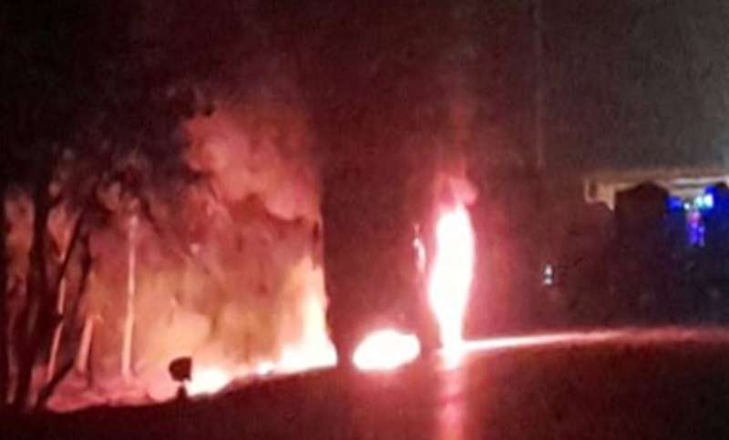 चलते ट्रक का टायर फटा, देखते ही देखते आग की लपटों में घिरा वाहन