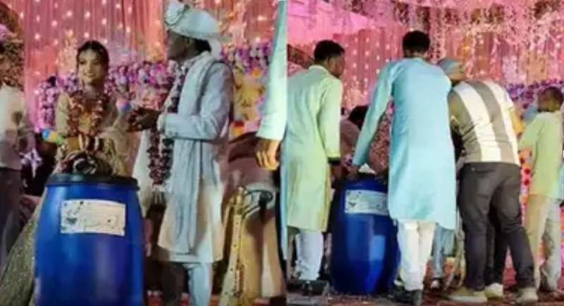 हमीरपुर शादी में अजीबो-गरीब गिफ्ट, दूल्हा-दुल्हन को दोस्तों ने दिया 'नीला ड्रम'