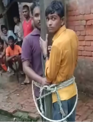 प्रतापगढ़: संदिग्ध गतिविधियों पर ग्रामीणों ने दो युवकों को पकड़ कर खंभे से बांधा
