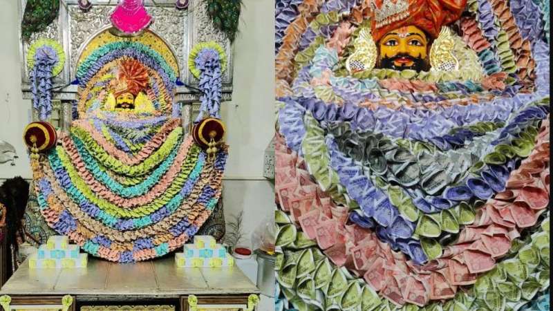 इंदौर में 40 भक्तों ने जेबें खाली कर बाबा खाटू श्याम का किया नोटों से श्रृंगार