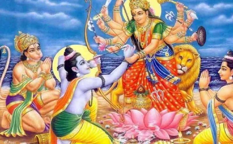 रामायण के अनुसार, भगवान श्रीराम ने रावण-वध से पूर्व अश्विन शुक्ल पक्ष की नवरात्र में देवी दुर्गा की आराधना की थी! उनकी भक्ति से माता प्रसन्न हुईं और विजय का आशीर्वाद दिया!
