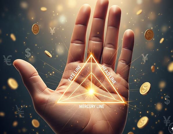 जब आपके भाग्यरेखा, मस्तिष्क रेखा और बुध रेखा से मिलकर कोई ट्रायंगल बनता है तो वह मनी ट्रायंगल कहलाता है. भाग्य रेखा नीचे से ऊपर की ओर जाती है, वहीं मस्तिष्क रेखा हृदय रेखा के नीचे और जीवन रेखा के ऊपर यानि हाथ के मध्य में होती है. वहीं बुध रेखा सबसे छोटी अंगुली से निकलकर नीचे की ओर जीवन रेखा, भाग्य रेखा या चंद्र पर्वत पर आती है. इन तीनों से ही मिलकर मनी ट्रायंगल बनता है.