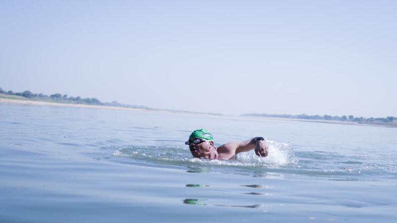 घुटने खराब लेकिन हौसला बुलंद: 63 साल की उम्र में नर्मदा में 25.65 किमी तैरकर बनाया रिकॉर्ड