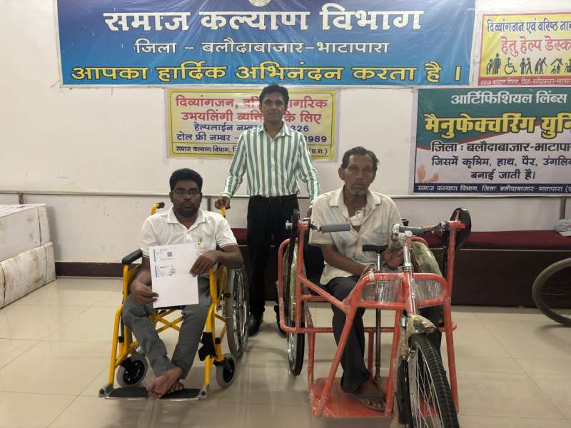 प्राप्त जानकारी के अनुसार समाज कल्याण विभाग द्वारा जिला कार्यालय में ग्राम चारौदा के राजकुमार पटेल, औरठी के टोपाराम साहु, शत्रुहन यादव, ग्राम टोनाटार के नारायण प्रसाद यादव क़ो ट्राई सिकल वितरण किया गया। इसीतरह ग्राम सुनसुनीया के संजय साहु, देवगांव के दुकलहा पाटले क़ो हस्त चलित ट्राईसिकल एवं ग्राम रवान के महेन्द्र शर्मा क़ो वाकिंग स्टिक प्रदान किया गया।