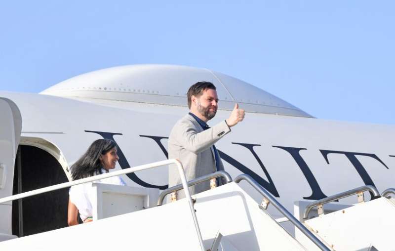 जयपुर। संयुक्त राज्य अमेरिका के उपराष्ट्रपति जेम्स डेविड वेंस गुरुवार प्रातः अपनी जयपुर यात्रा पूर्ण कर स्वदेश रवाना हुए। इस अवसर पर जयपुर एयरपोर्ट पर उद्योग एवं वाणिज्य मंत्री कर्नल राज्यवर्धन राठौड़ एवं मुख्य सचिव सुधांश पंत ने उन्हें भावभीनी विदाई दी। उल्लेखनीय है कि वेंस 21 अप्रैल को अपनी पत्नी उषा वेंस और बच्चों के साथ जयपुर पहुंचे थे।
