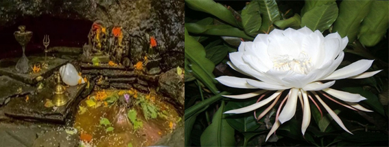 पाताल भुवनेश्वर गुफा में भगवान गणेश की कटी शिलारूपी मूर्ति के ठीक ऊपर 108 पंखुड़ियों वाला शवाष्टक दल ब्रह्मकमल सुशोभित है। इस ब्रह्मकमल से भगवान गणेश के शिलारूपी मस्तक पर जल की दिव्य बूंद टपकती है। मुख्य बूंद आदिगणेश के मुख में गिरती हुई दिखाई देती है। मान्यता है कि यह ब्रह्मकमल भगवान शिव ने ही यहां स्थापित किया था।