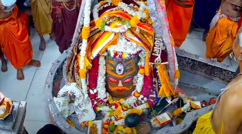 महाकाल को अर्पित हुआ पंचामृत, रुद्राक्ष माला और चांदी का मुकुट