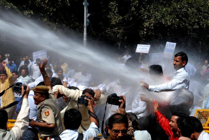 कलेक्ट्रेट घेराव से पहले रोके गए प्रदर्शनकारी, पानी की बौछार से तितर-बितर