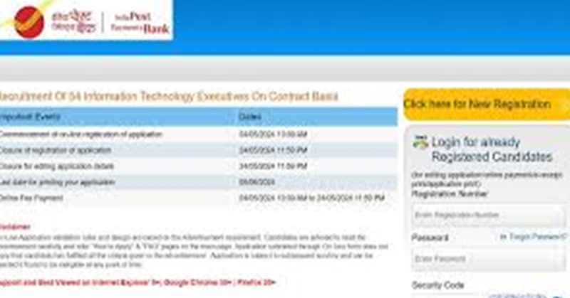 बैंक में सरकारी नौकरी का सपना देख रहे युवाओं के लिए सुनहरा मौका है। इंडिया पोस्ट पेमेंट बैंक में आईटी एग्जीक्यूटिव पदों पर भर्ती निकाली गई है। इस भर्ती में शामिल होने के लिए अभ्यर्थी ऑनलाइन माध्यम से आईपीपीबी की आधिकारिक वेबसाइट www.ippbonline.com पर जाकर या इस पेज पर दिए डायरेक्ट लिंक पर क्लिक करके आवेदन प्रक्रिया पूर्ण कर सकते हैं। एप्लीकेशन फॉर्म भरने की अंतिम तिथि 24 मई 2024 निर्धारित है। आवेदन से पहले उम्मीदवार पात्रता एवं मापदंड की जांच अवश्य कर लें।