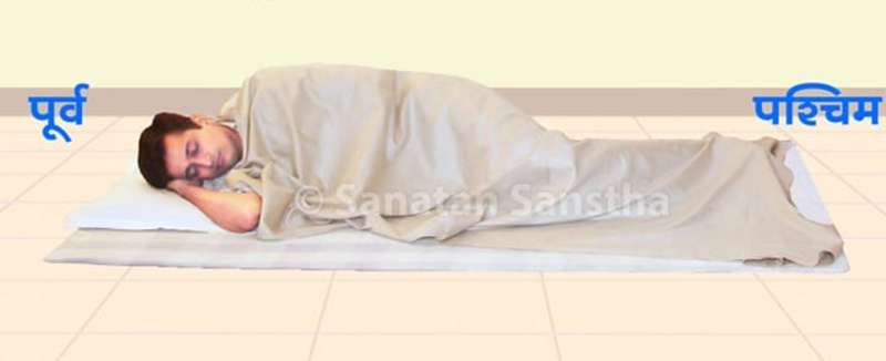 बायीं करवट सोना स्वास्थ्य के लिए लाभदायक होता है। दक्षिण दिशा में पांव रखकर कभी नहीं सोना चाहिए। इस तरफ यम और दुष्टदेवों का निवास रहता है। इसका वैज्ञानिक कारण यह भी है कि मस्तिष्क में रक्त का संचार कम को जाता है।