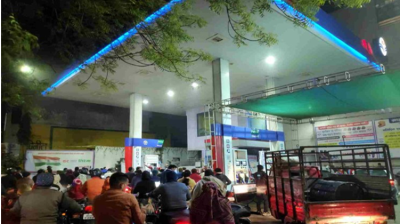 ट्रक चालकों की हड़ताल से पेट्रोल पंप पर लोगों की लगी कतार