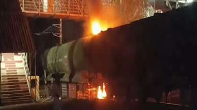 ट्रेन की बोगियों में उठीं लपटें, भयभीत ग्रामीणों ने की सामूहिक पलायन