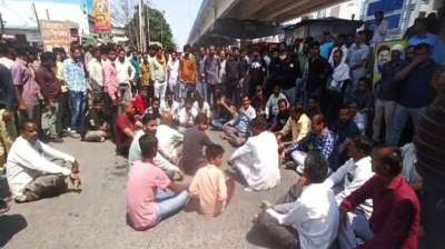 इंदौर रोड पर स्थित फ्लाईओवर पर लगातार हो रहे हादसों और मौतों से गुस्साए लोगों ने किया सड़क जाम