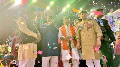 इंदौर के फाग उत्सव में कैलाश विजयवर्गीय के साथ खूब थिरके नितिन गडकरी